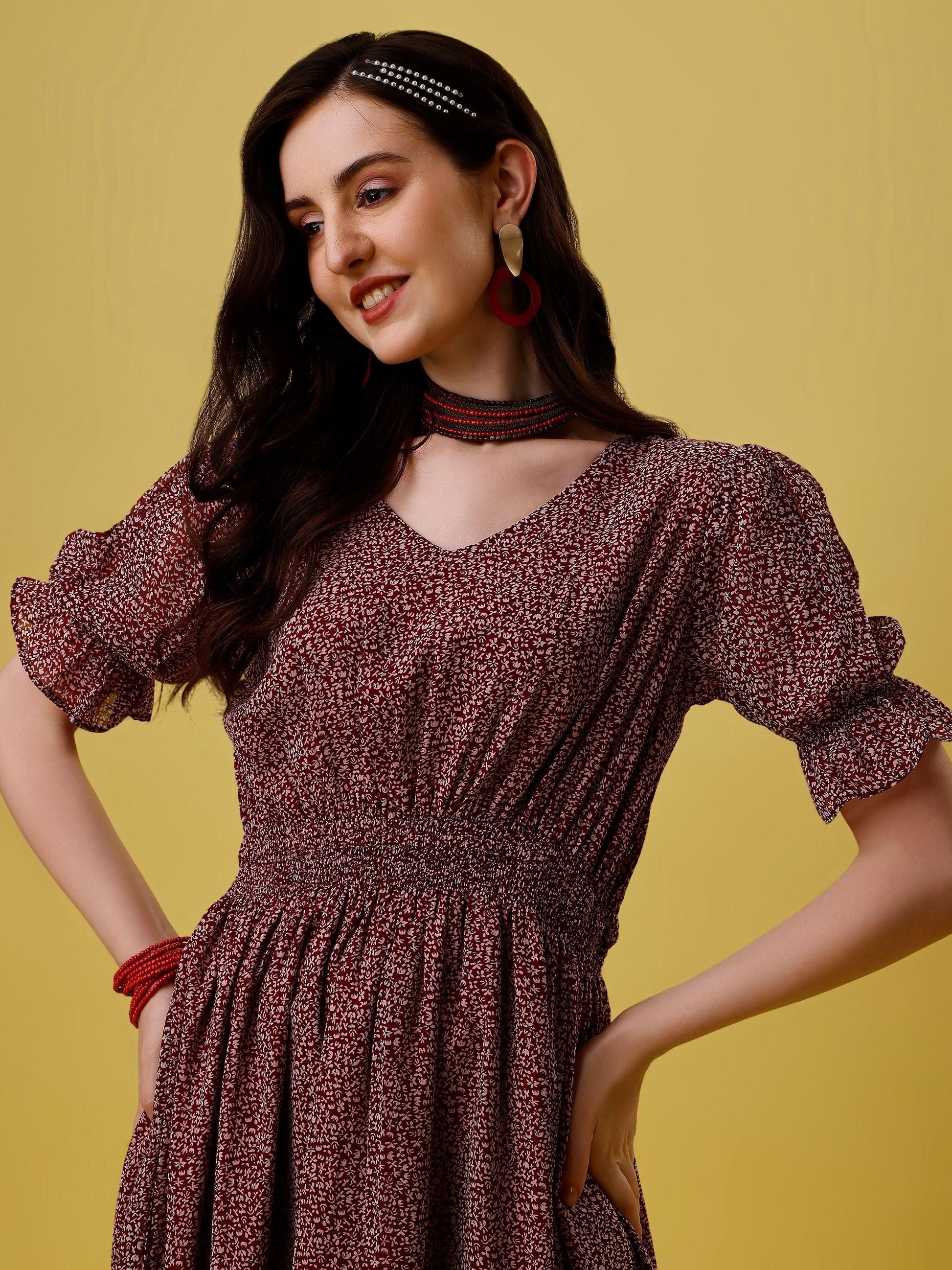Product Name: Plus Size Women's Georgette Printed Flared Midi Dress